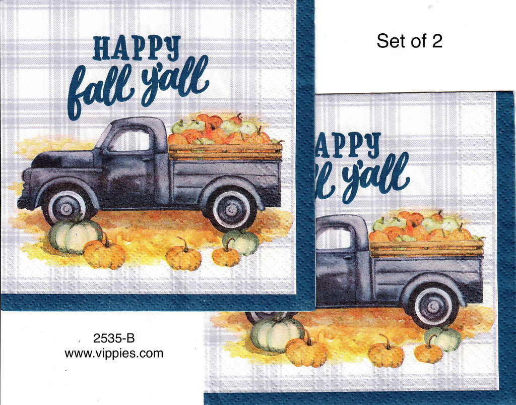 AT-2535-B-S Set of 2 Blue Pickup Happy Fall Yall Napkin for Decoupage